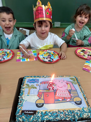Hoy hemos celebrado otro cumple más en clase. Ha sido el de Ginés. Cumplió ayer los años pero como no le habíamos visto, le hemos felicitado esta mañana cuando nos hemos saludado.